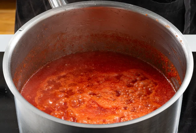 7. Pyré přiveďte k varu a vařte 10 minut na středním plameni za stálého míchání.