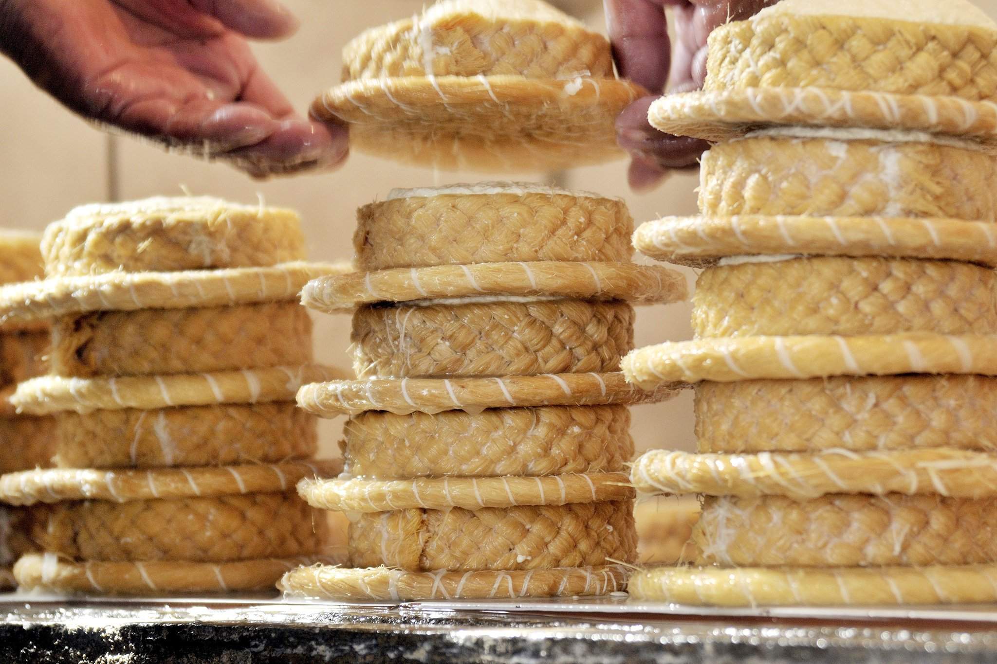 Sýry se nevyrábí jen z mléka – některé druhy se vyrábějí z telecích nebo vepřových jater, ze zakysané smetany a cukru s ledem, z kaseinu a sóji, z hrachu. Na obrázku: sýry vyrobené v Německu na ovčí farmě Palmzin. Farma, založená v roce 2012, vyrábí sýry z ovčího mléka každý den.